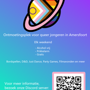 Een gezellige ontmoetingsplek voor queer jongeren in Amersfoort. Elk weekend organiseren wij een gezellige middag/avond voor queer ...